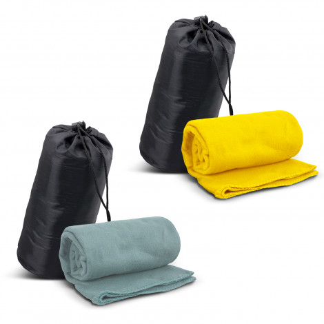 Super warm 1200mm x 1500mm soft fleecy blanket which is presented in a smart 210D polyester drawstring carry bag. The blanket is manufactured from 240gsm polar fleece material with neatly stitched edges and is ideal for use at home or any outdoor event.