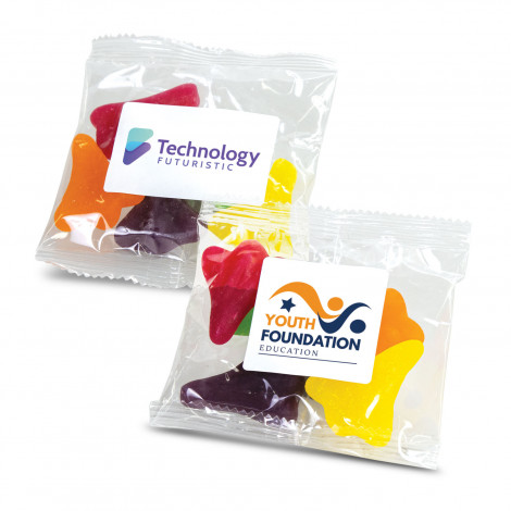 A fun and flavourful treat, each 50g bag contains assorted Jet Planes and is perfect for events, giveaways, or boosting brand awareness. The lollies are presented in sealed cellophane bag with a full colour custom label for standout branding. Made in New Zealand, a lead time of 10 working days applies to this product.
