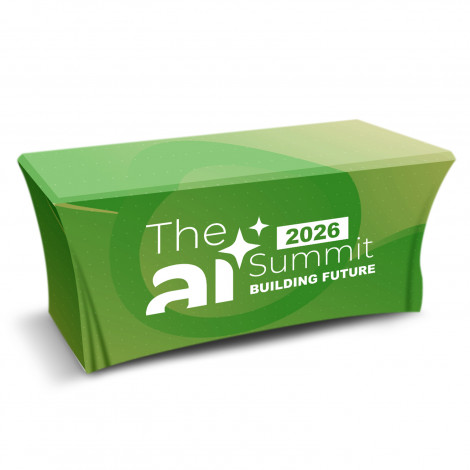 Medium stretched polyester tablecloth that delivers a sleek, fitted look for events and expo displays. The stretch fabric wraps neatly around the table for a smooth, secure finish that stays in place throughout the day. With full-colour sublimation across the entire surface, it offers a clean, modern backdrop for presenting products, signage or promotional materials.