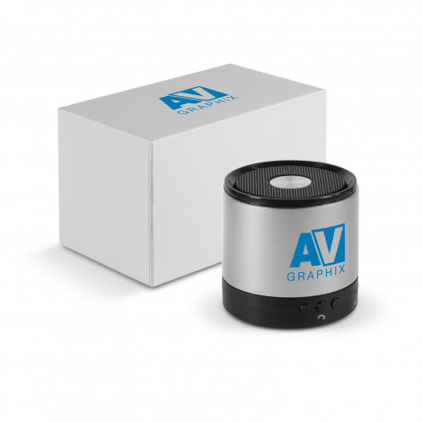 Stylish 3W Bluetooth speaker which offers high definition stereo sound and is compatible with all mobile devices that support Bluetooth. It has a wireless connectivity range of over 10 metres and can also be used with an audio cable. Playing time is 3-4 hours and it is easily recharged from a laptop, a power bank or a USB mains adapter. It has a microphone for phone calls and music playback can be controlled directly from the speaker. Polaris is presented in a gift box with a Micro-B USB cable, an audio cable and an instruction leaflet. The silver speaker engraves to a natural etch finish.