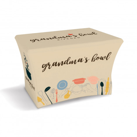 Small stretched polyester tablecloth that delivers a sleek, fitted look for events and expo displays. The stretch fabric wraps neatly around the table for a smooth, secure finish that stays in place throughout the day. With full-colour sublimation across the entire surface, it offers a clean, modern backdrop for presenting products, signage or promotional materials.
